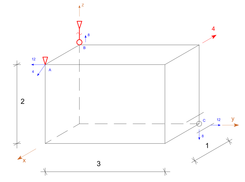 \begin{aligned} & \Sigma F_x=0 \\ & \Sigma F_y=0 \\ & \Sigma F_z=0 \\ & \Sigma M_x=0 \\ & \Sigma M_y=0 \\ & \Sigma M_z=0 \end{aligned}Przykład 1