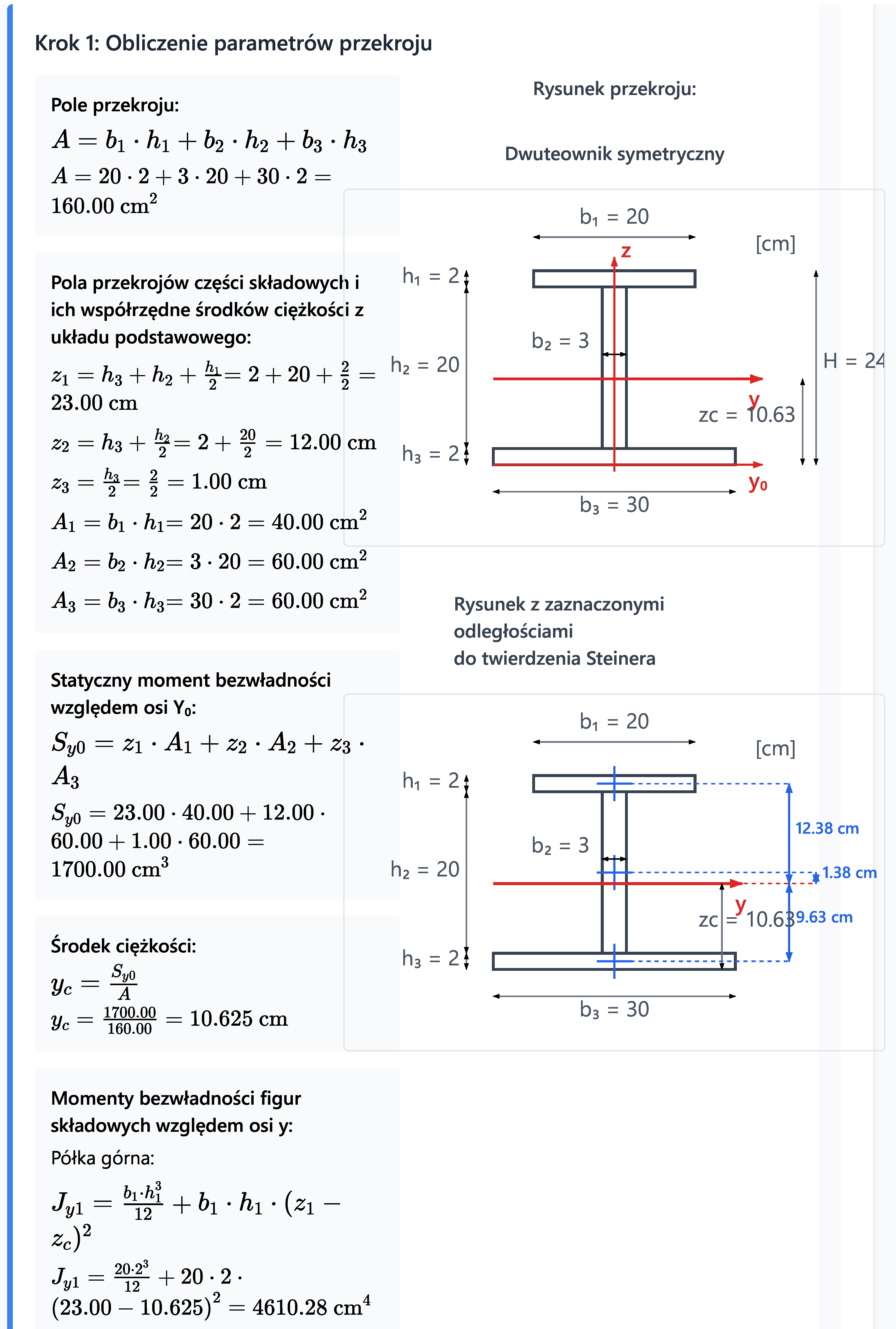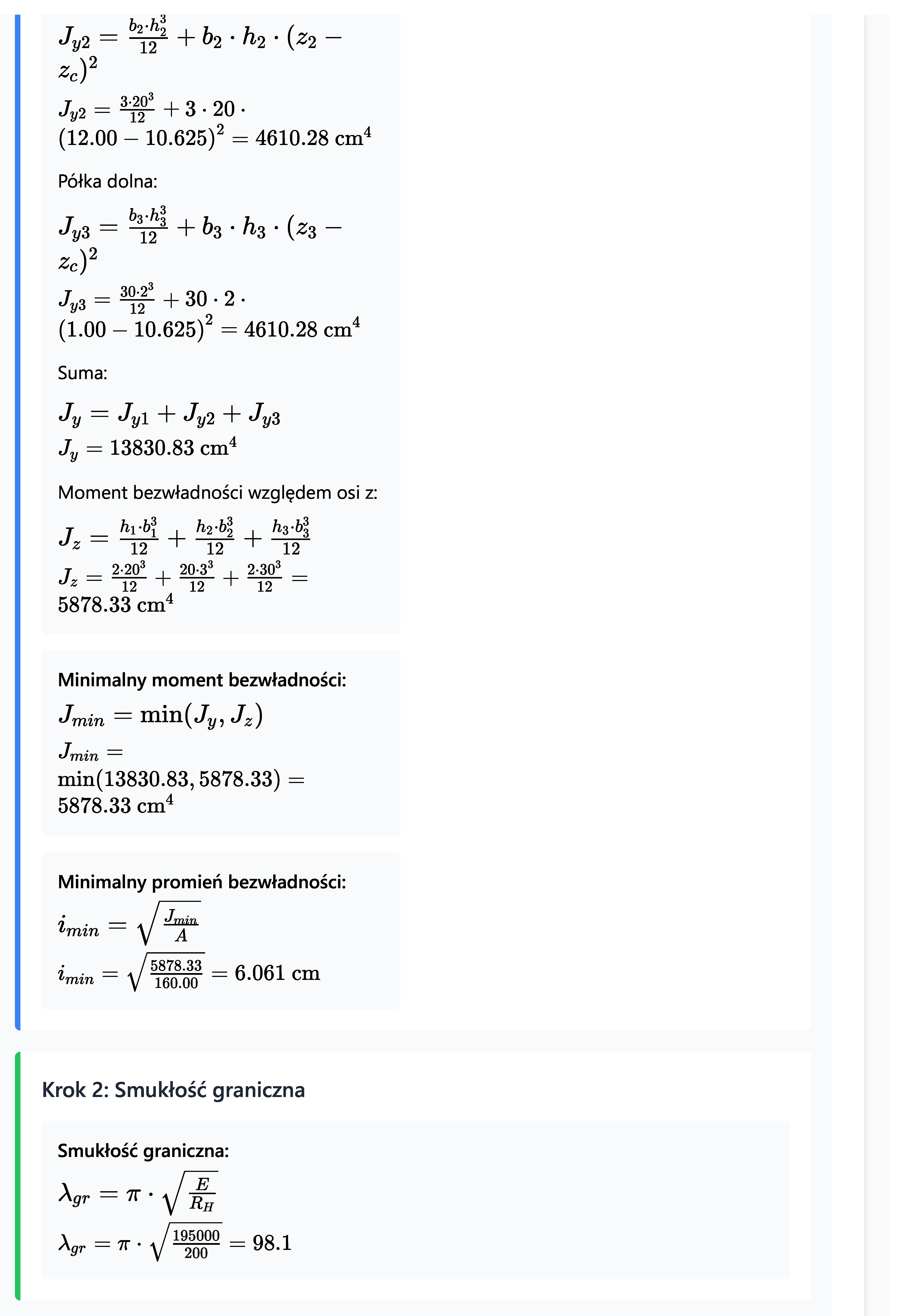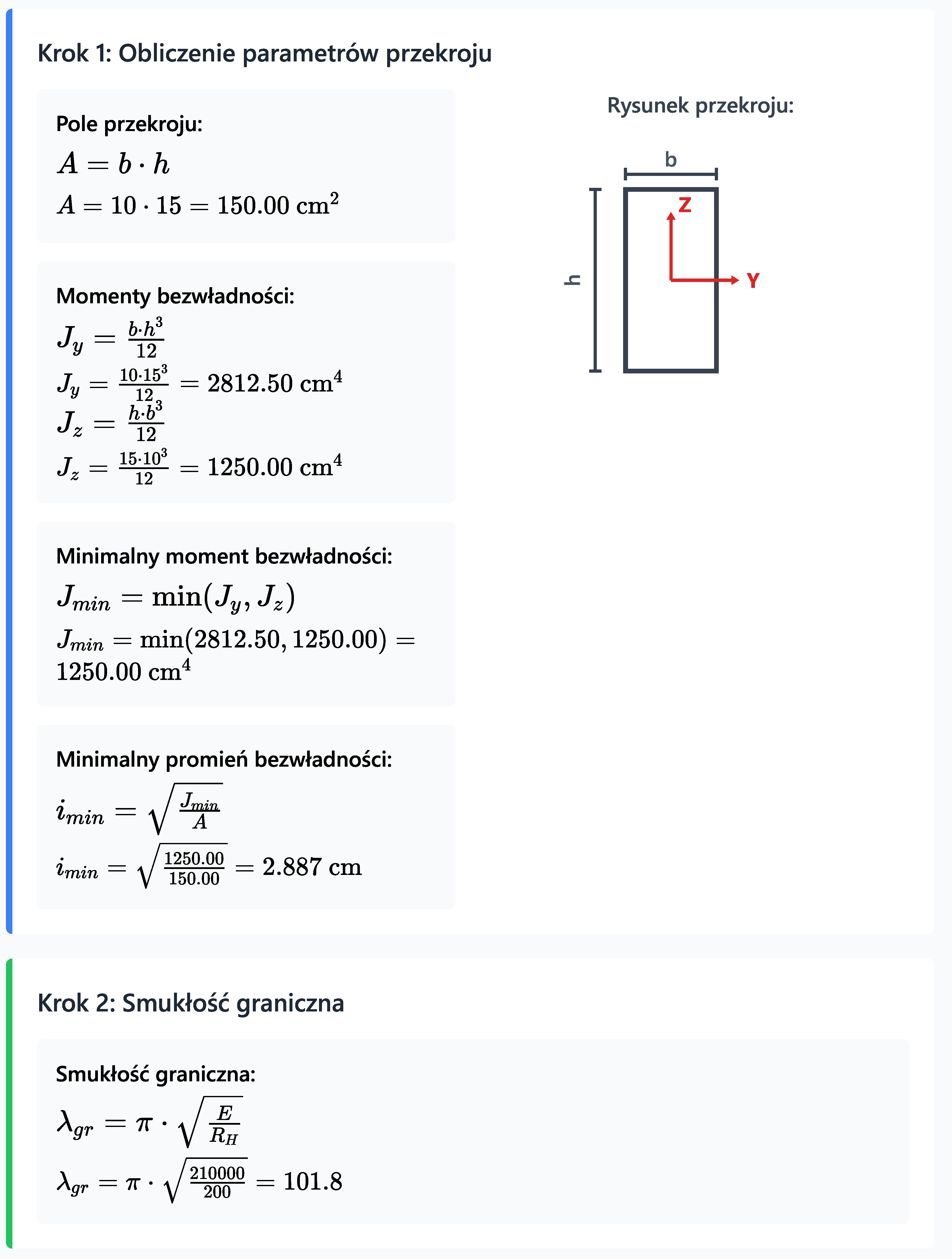 \[ \lambda = \frac{L_w}{i_{min}} \]gdzie \(i_{min}\) to najmniejszy promień bezwładności przekroju.